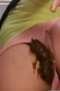 an asian chick laying on the bed while holding her gash
